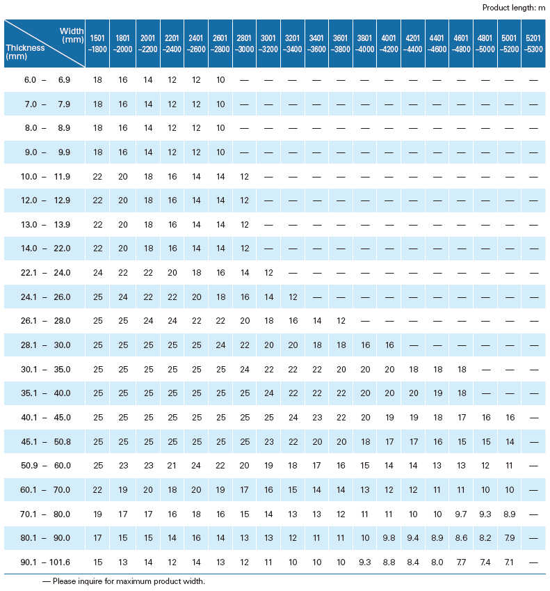 The target value (average value) of Brinell surface hardness is used in the numerical figures in the grade names so that customers can easily understand the properties of each grade. By specifying narrow ranges of Brinell hardness, consideration is given to reducing variations in formability in customers’ manufacturing processes.